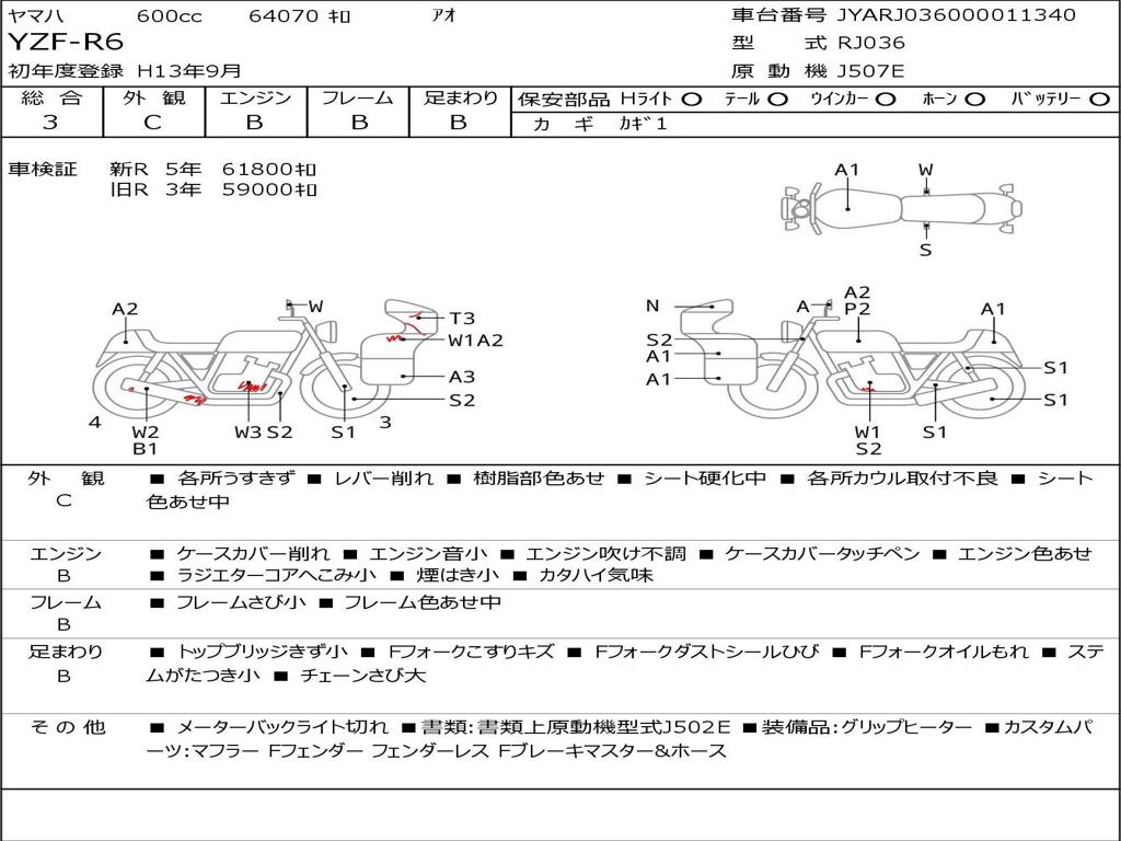 | Номер рамы / VIN | JYARJ036000011340 |