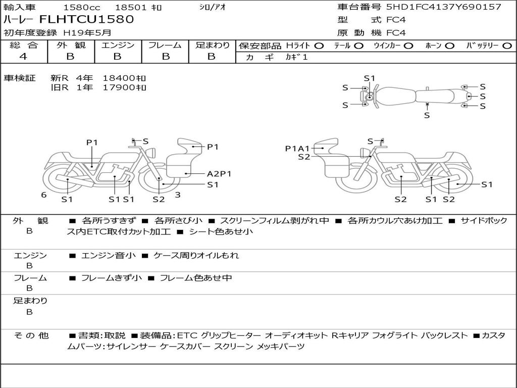 | Номер рамы / VIN | 5HD1FC4137Y690157 |