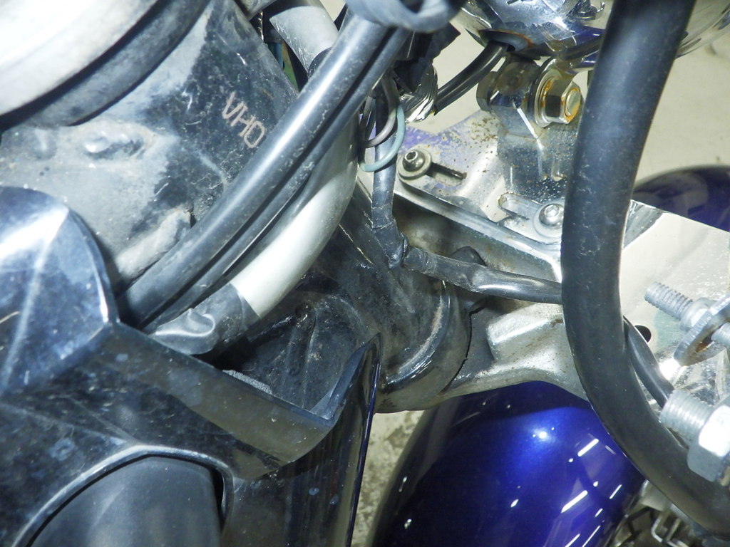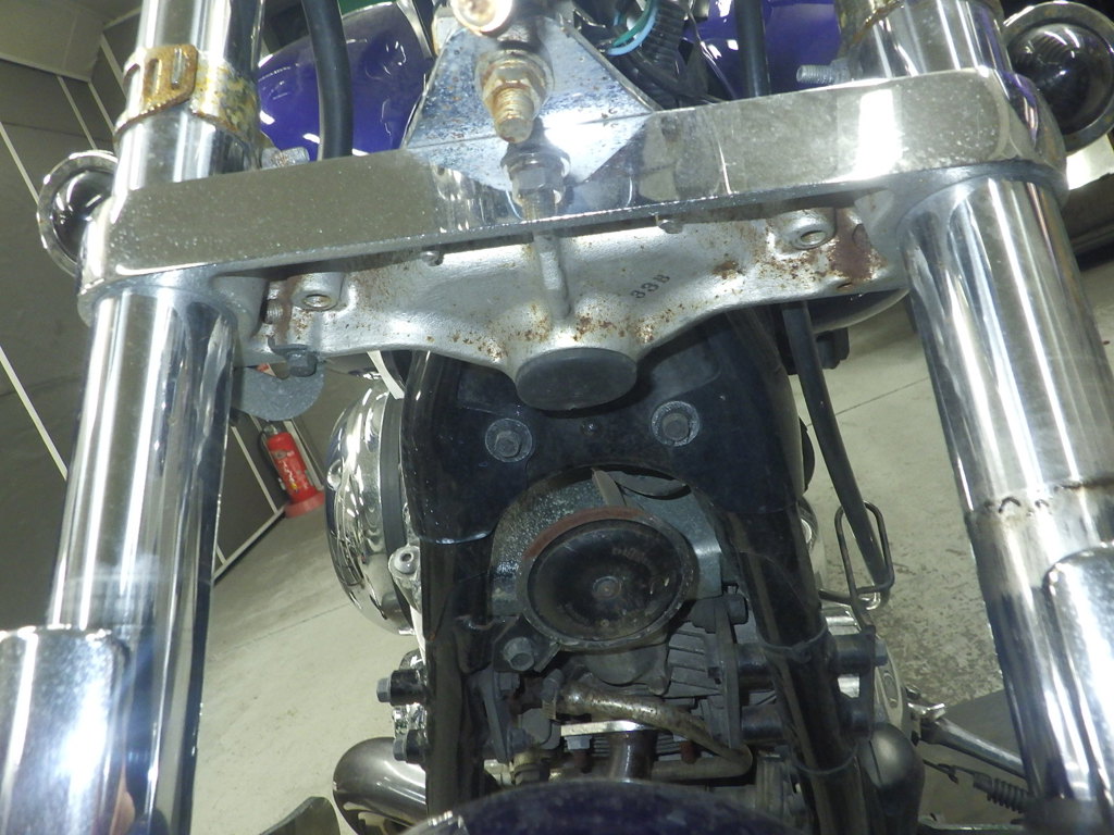| внешняя часть вилки | следы коррозии <много>, потек масла <много>, неисправен сальник, слабый |