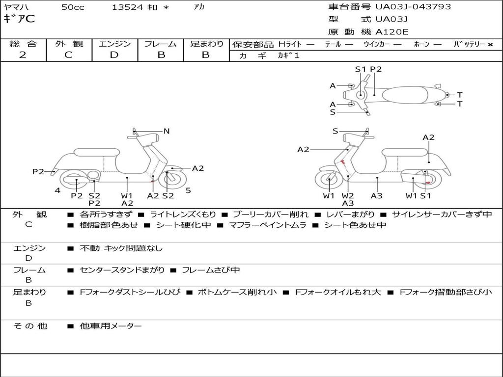 | Номер рамы / VIN | UA03J-043793 |