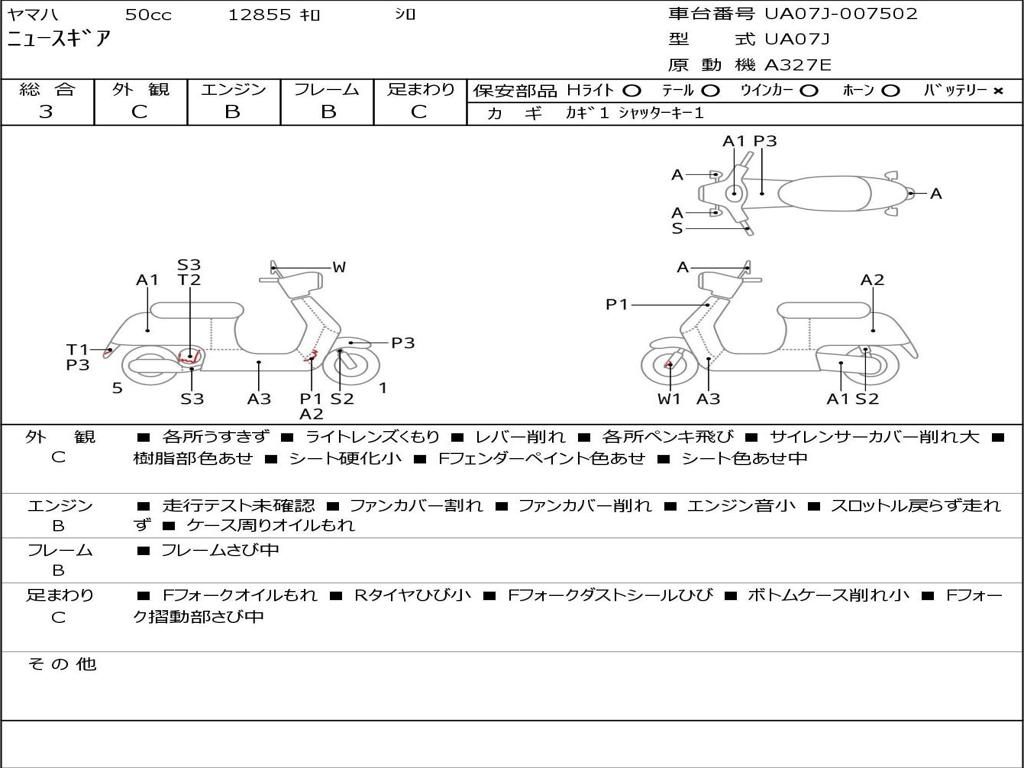 | Номер рамы / VIN | UA07J-007502 |