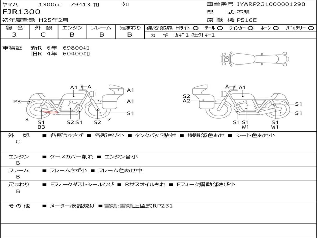 | Номер рамы / VIN | JYARP231000001298 |