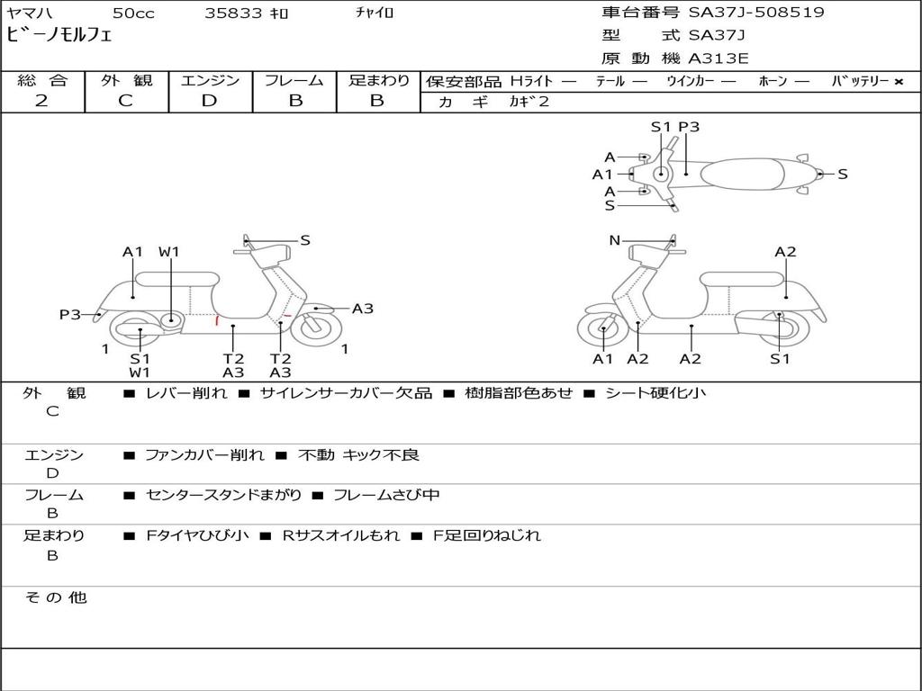 | Номер рамы / VIN | SA37J-508519 |