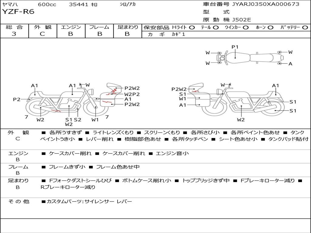 | Номер рамы / VIN | JYARJ0350XA000673 |