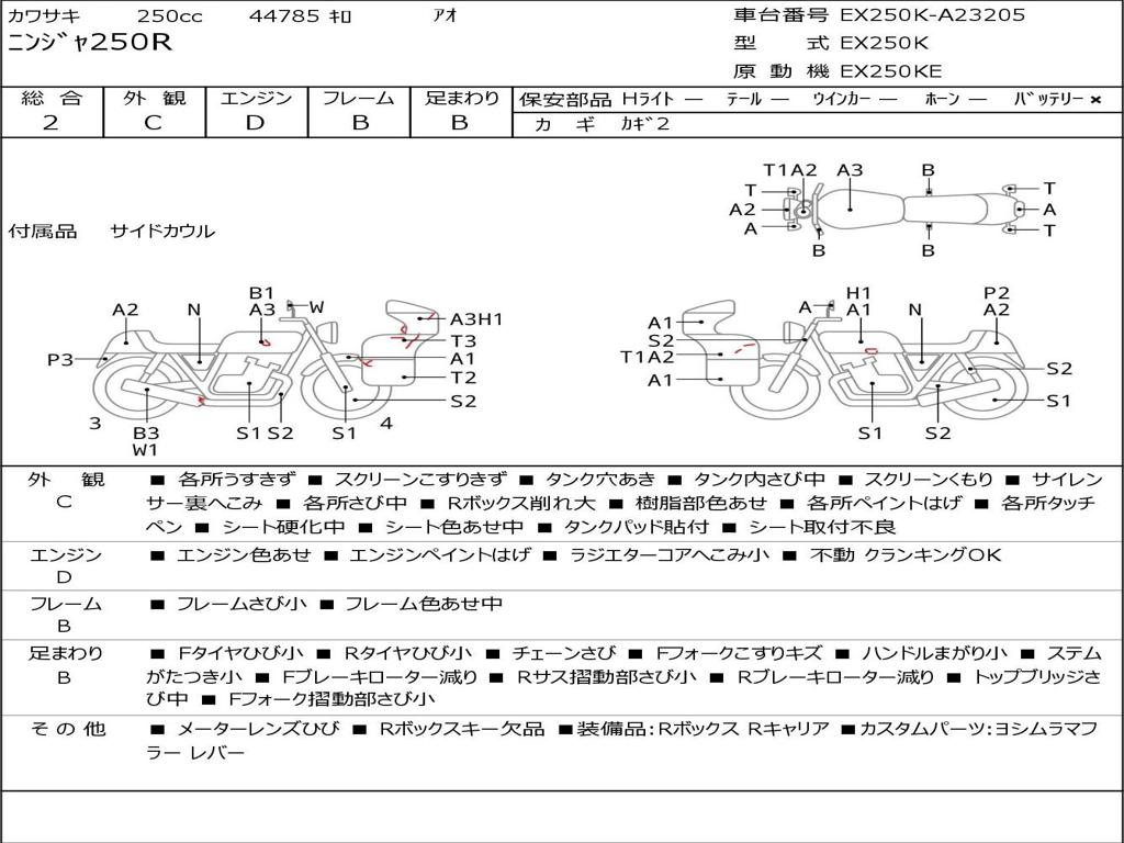 | Номер рамы / VIN | EX250K-A23205 |