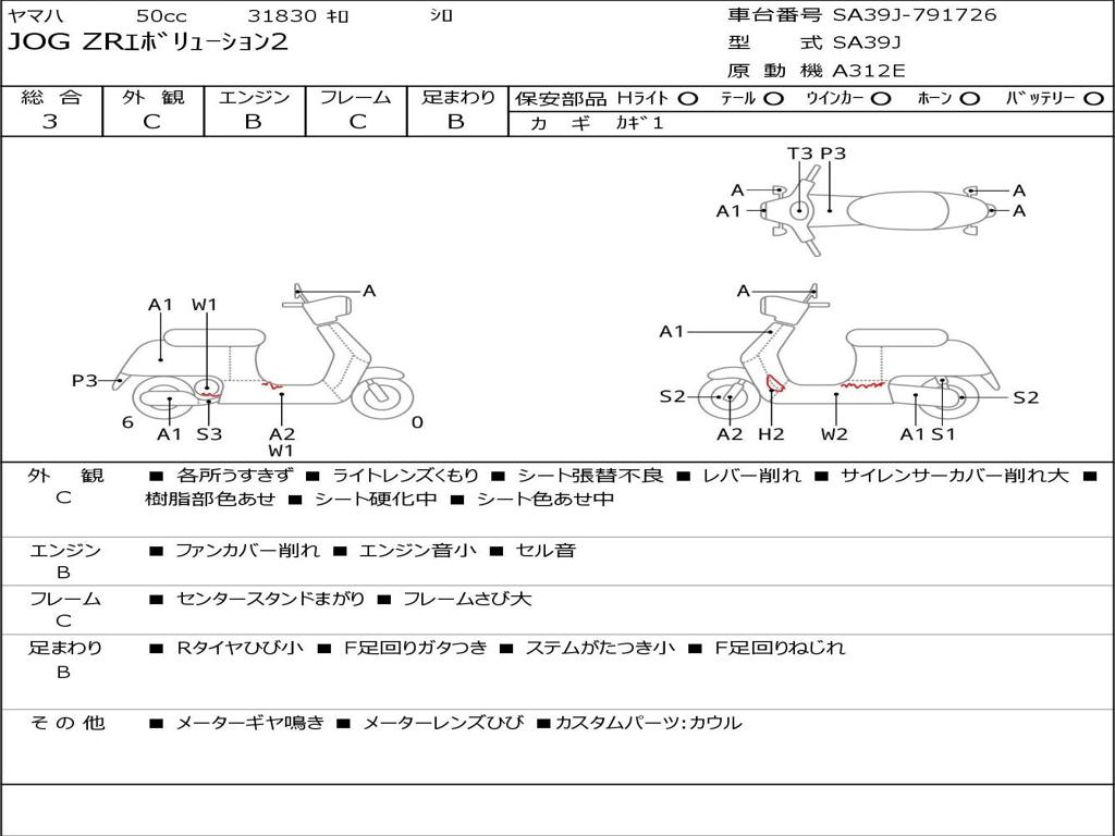 | Номер рамы / VIN | SA39J-791726 |