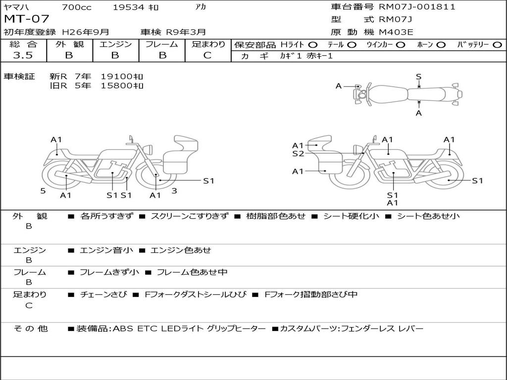 | Номер рамы / VIN | RM07J-001811 |