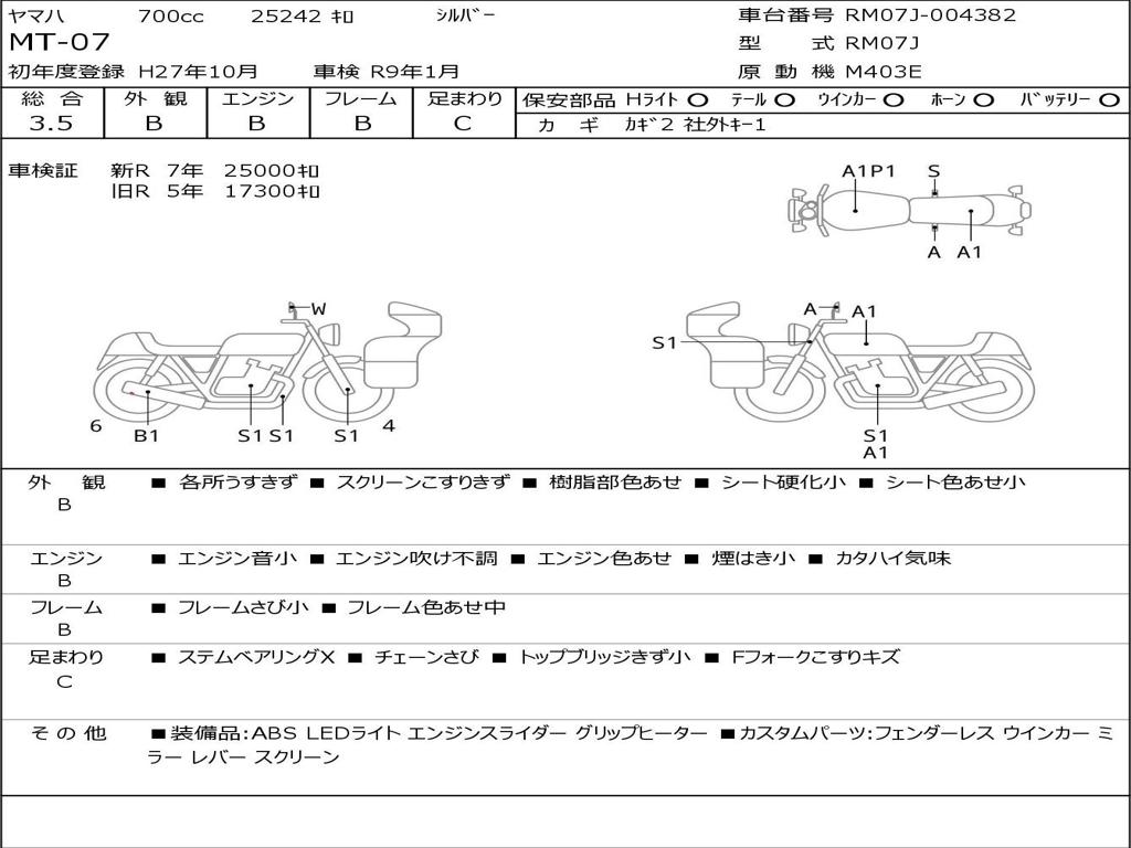 | Номер рамы / VIN | RM07J-004382 |