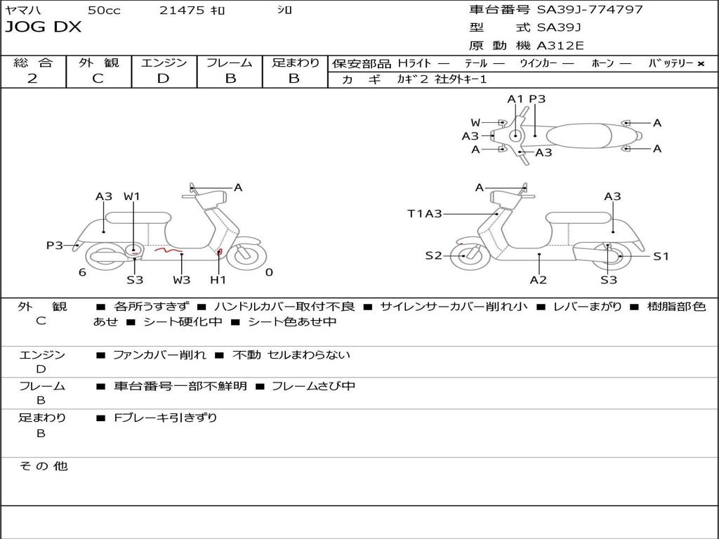| Номер рамы / VIN | SA39J-774797 |