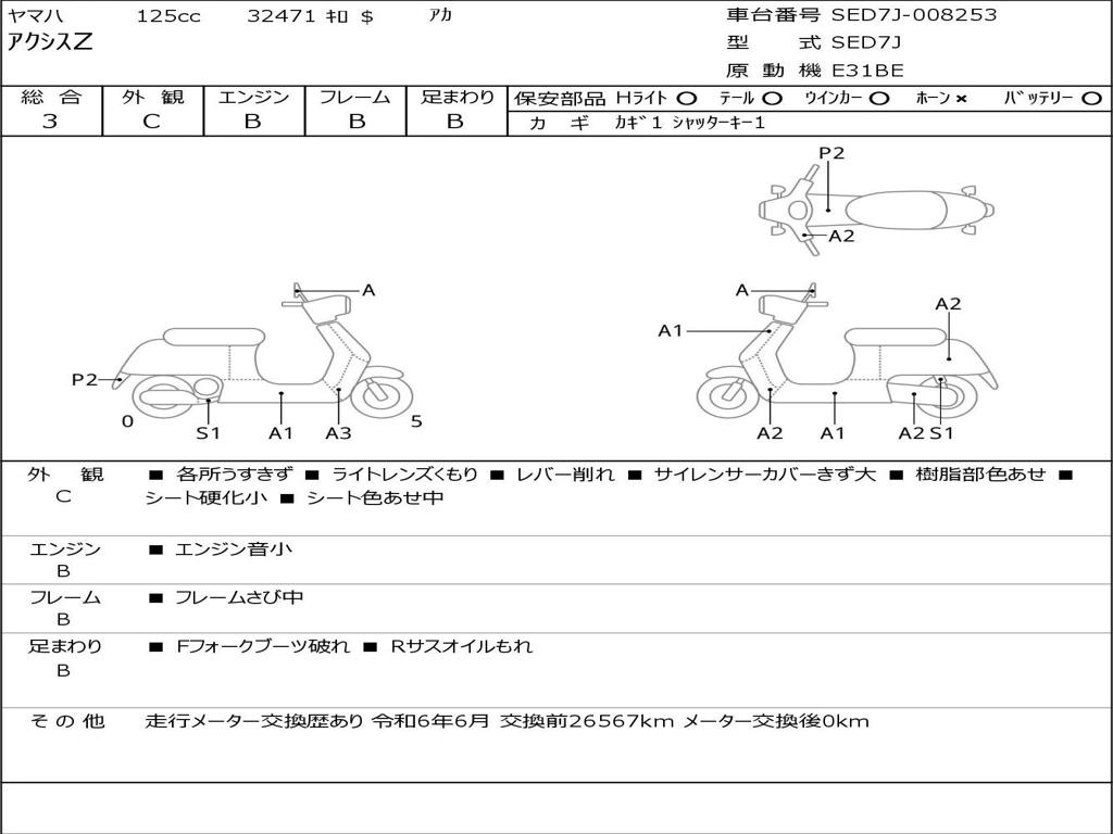 | Номер рамы / VIN | SED7J-008253 |