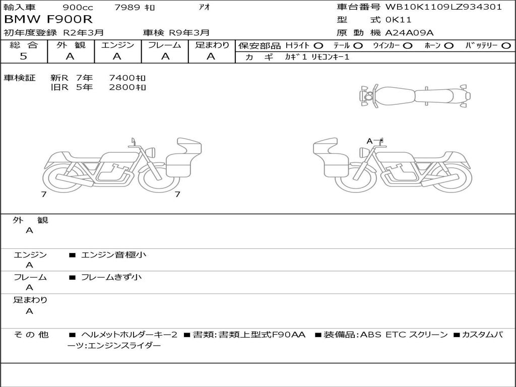 | Номер рамы / VIN | WB10K1109LZ934301 |