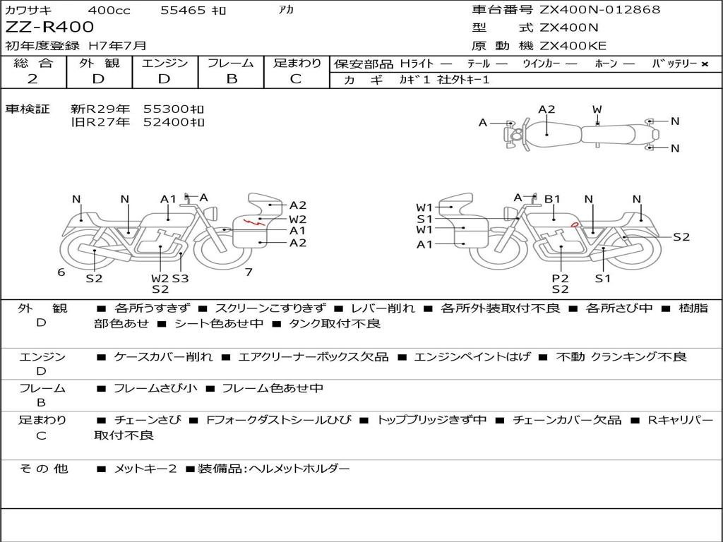 | Номер рамы / VIN | ZX400N-012868 |