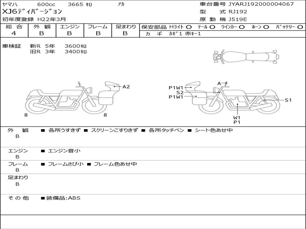 | Номер рамы / VIN | JYARJ192000004067 |