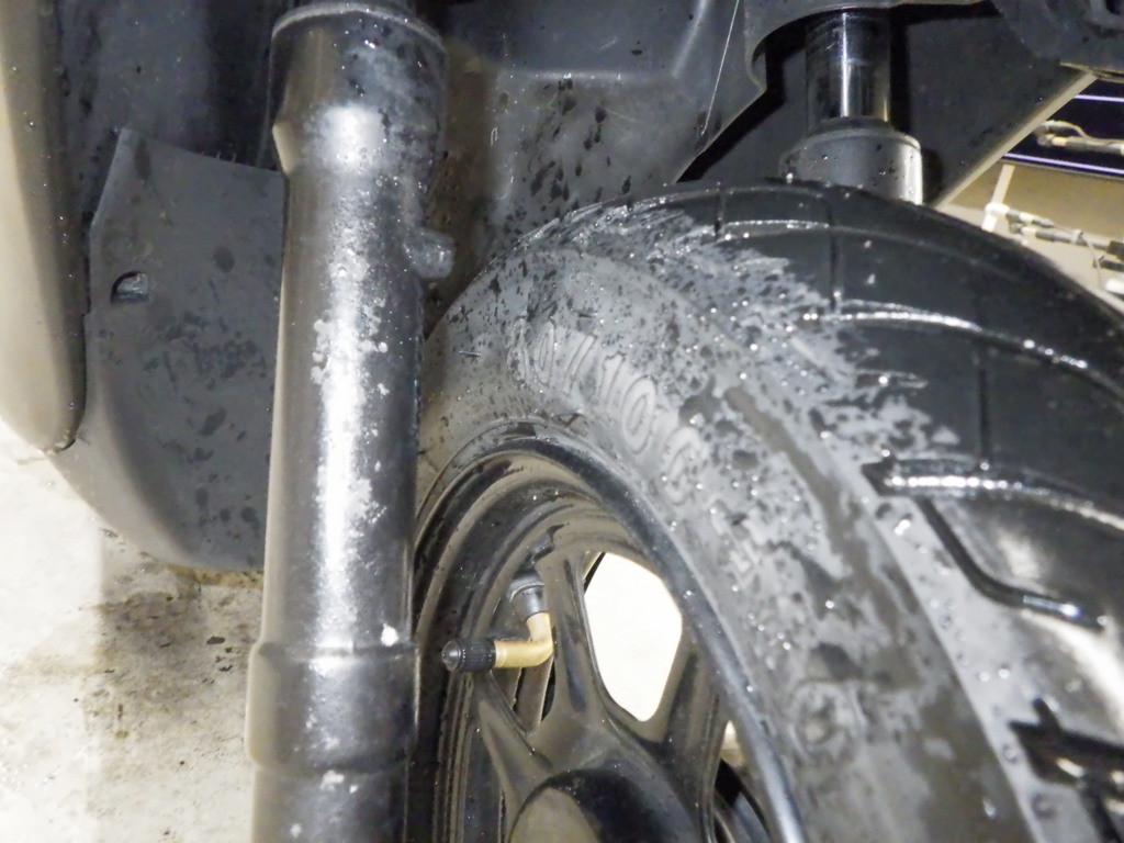 | внешняя часть вилки | следы коррозии <много>, износ(потертость) краски, потек масла |