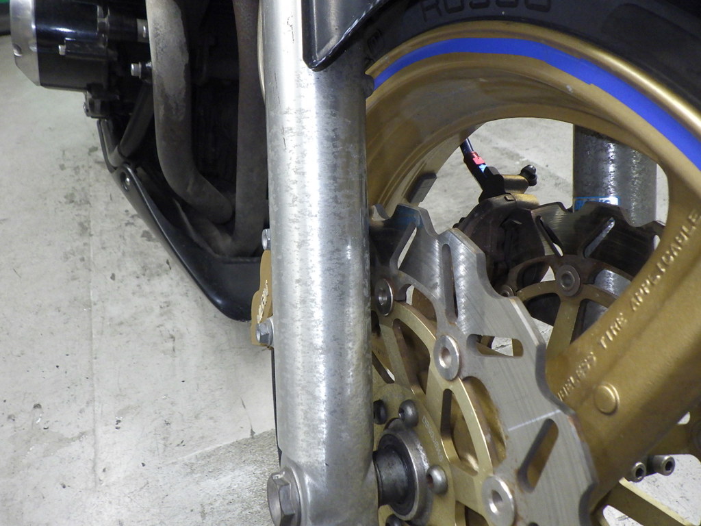 | внешняя часть вилки | следы коррозии <много>, потек масла |