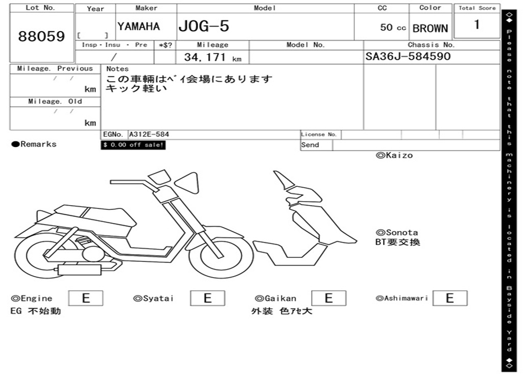 | Номер рамы / VIN | SA36J-584590 |