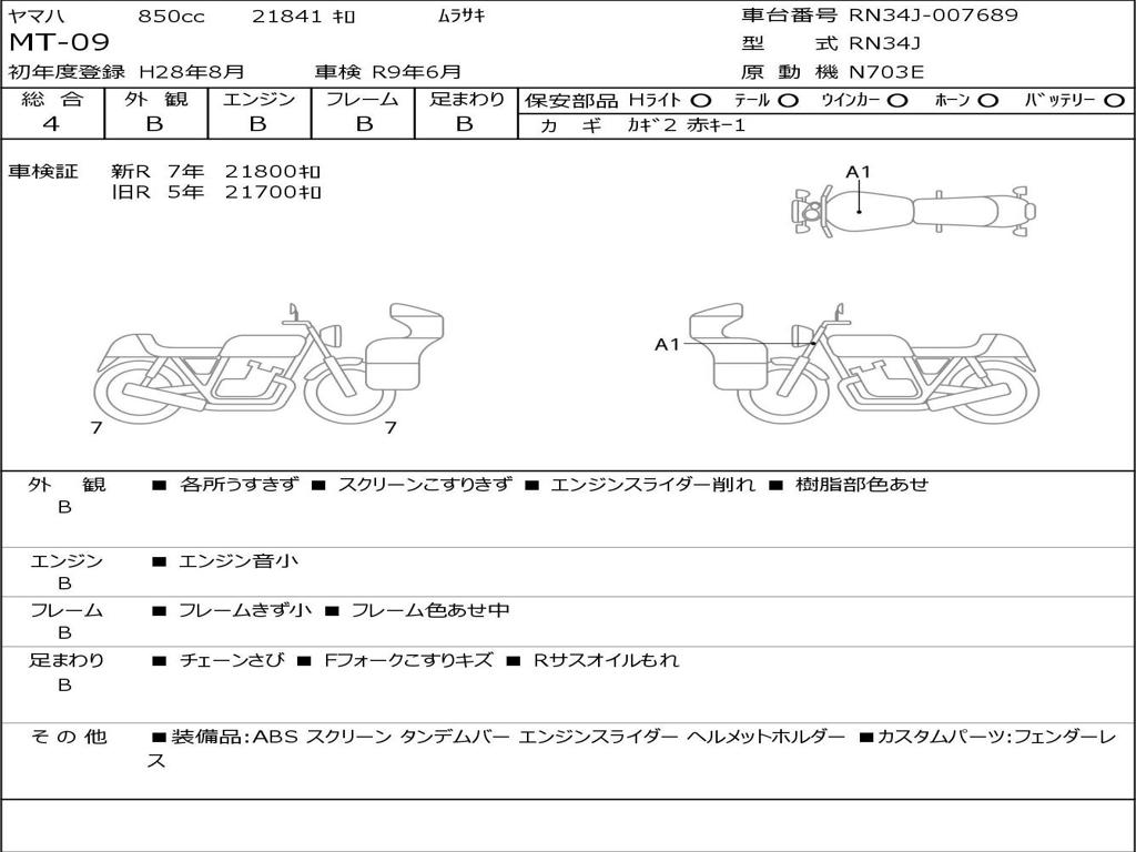 | Номер рамы / VIN | RN34J-007689 |