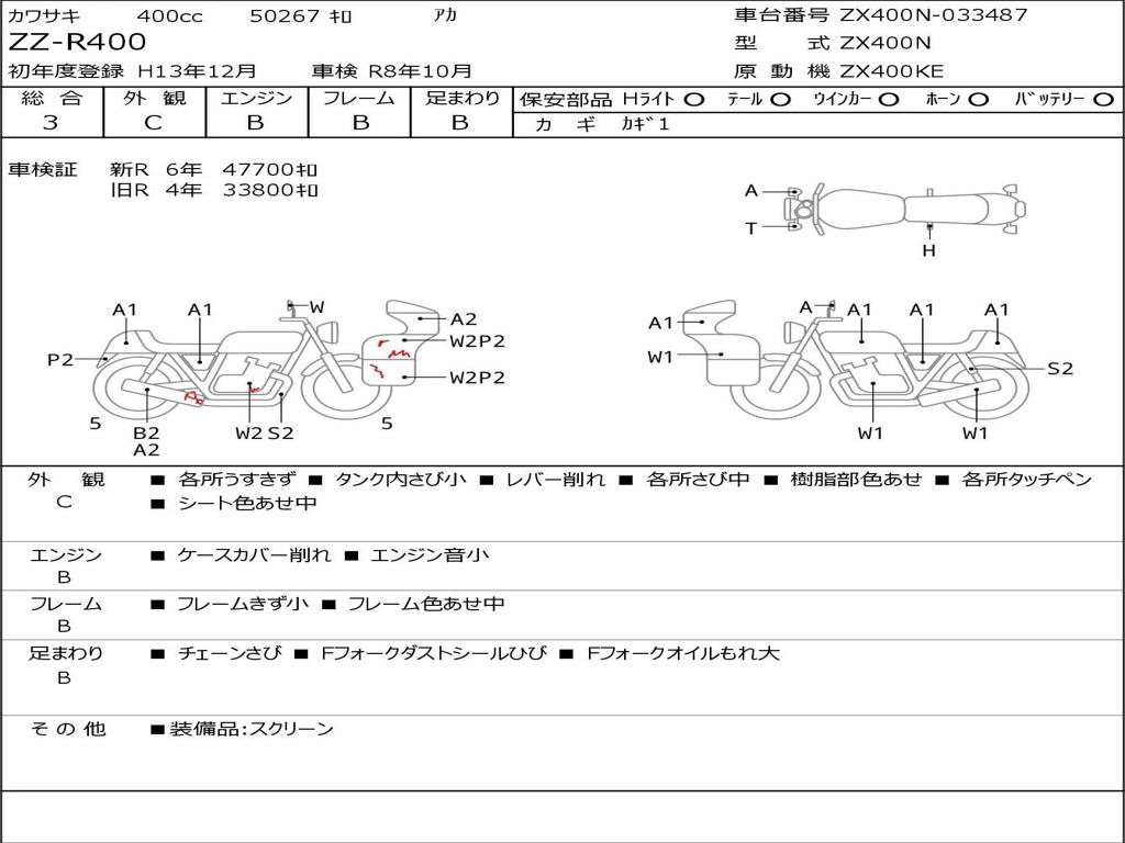 | Номер рамы / VIN | ZX400N-033487 |