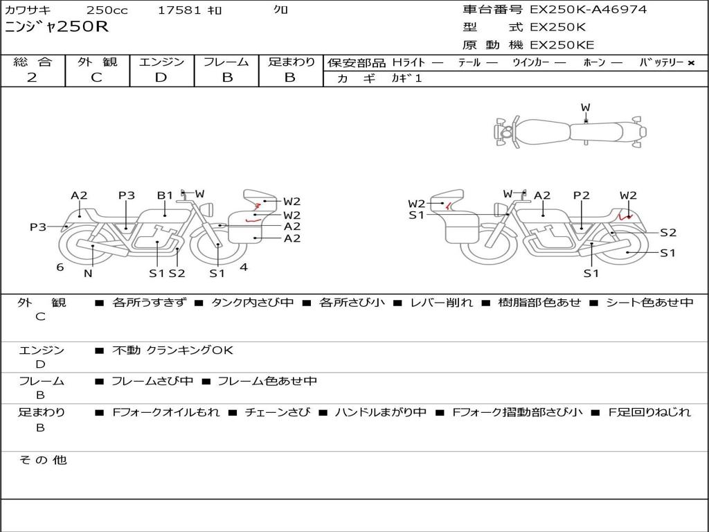 | Номер рамы / VIN | EX250K-A46974 |
