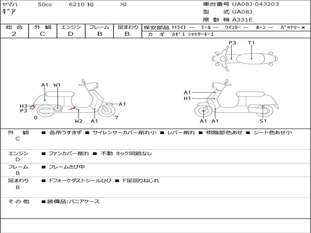 | Номер рамы / VIN | UA08J-043203 |