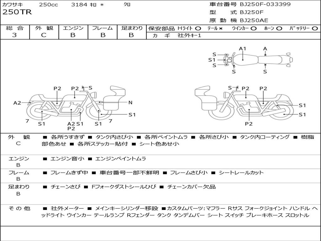 | Номер рамы / VIN | BJ250F-033399 |