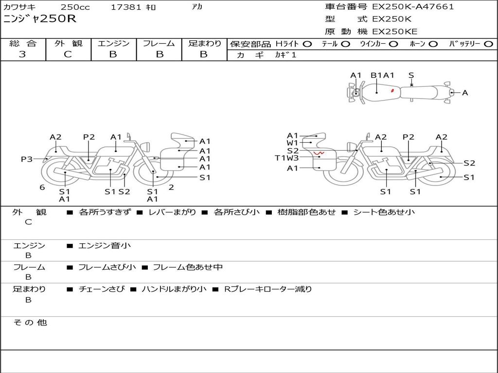 | Номер рамы / VIN | EX250K-A47661 |