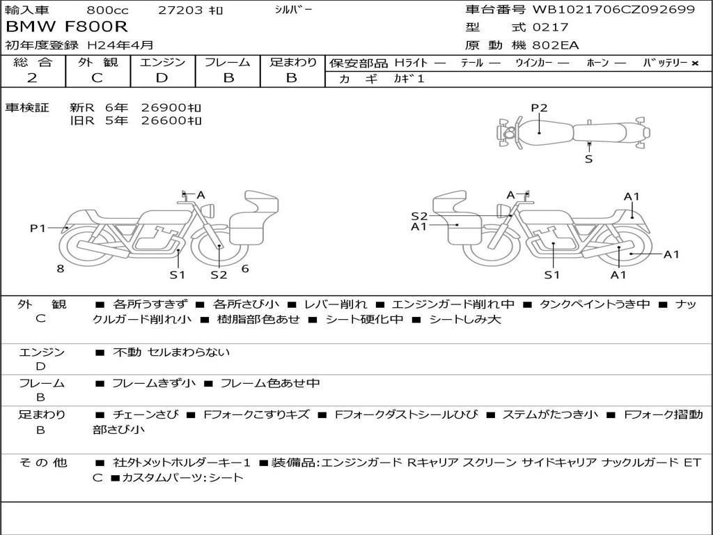| Номер рамы / VIN | WB1021706CZ092699 |