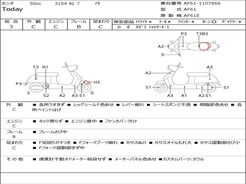 | Номер рамы / VIN | AF61-1107866 |