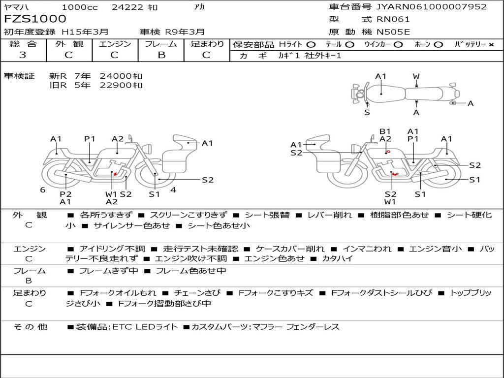 | Номер рамы / VIN | JYARN061000007952 |
