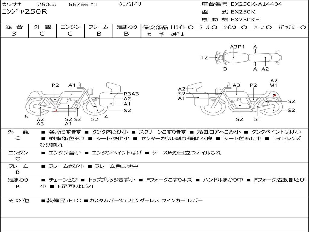 | Номер рамы / VIN | EX250K-A14404 |