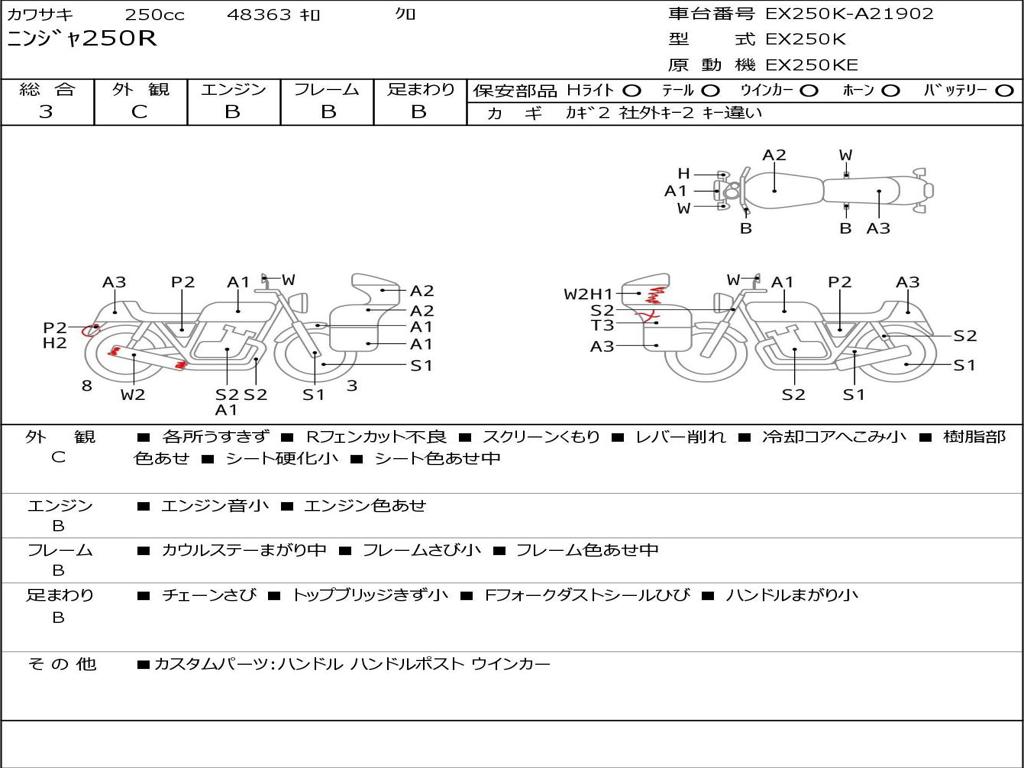 | Номер рамы / VIN | EX250K-A21902 |
