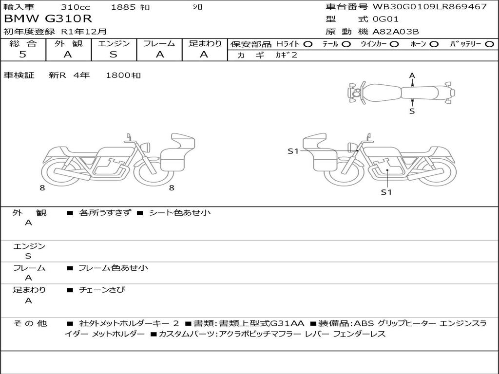 | Номер рамы / VIN | WB30G0109LR869467 |