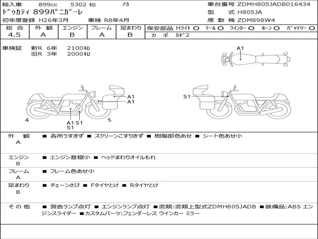 | Номер рамы / VIN | ZDMH805JADB016434 |