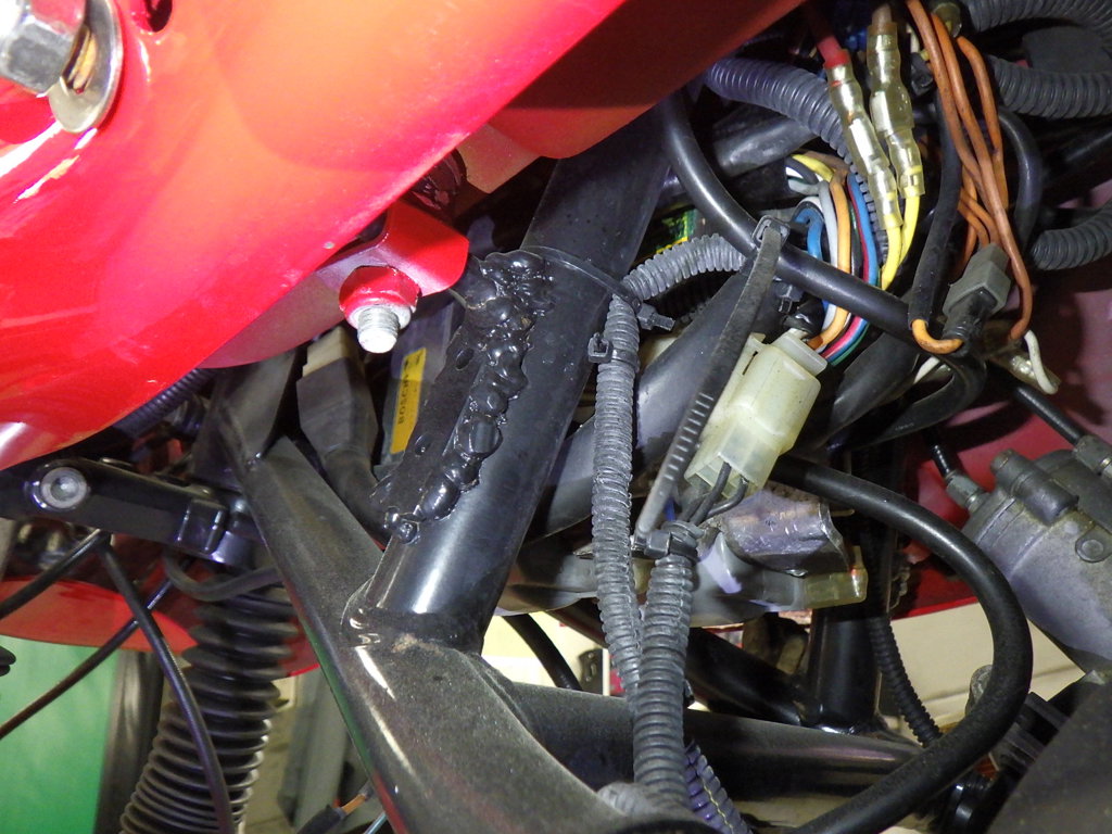 | внешняя часть вилки | следы коррозии <много>, слабый, перекрашено, неравномерность цвета ЛКП |