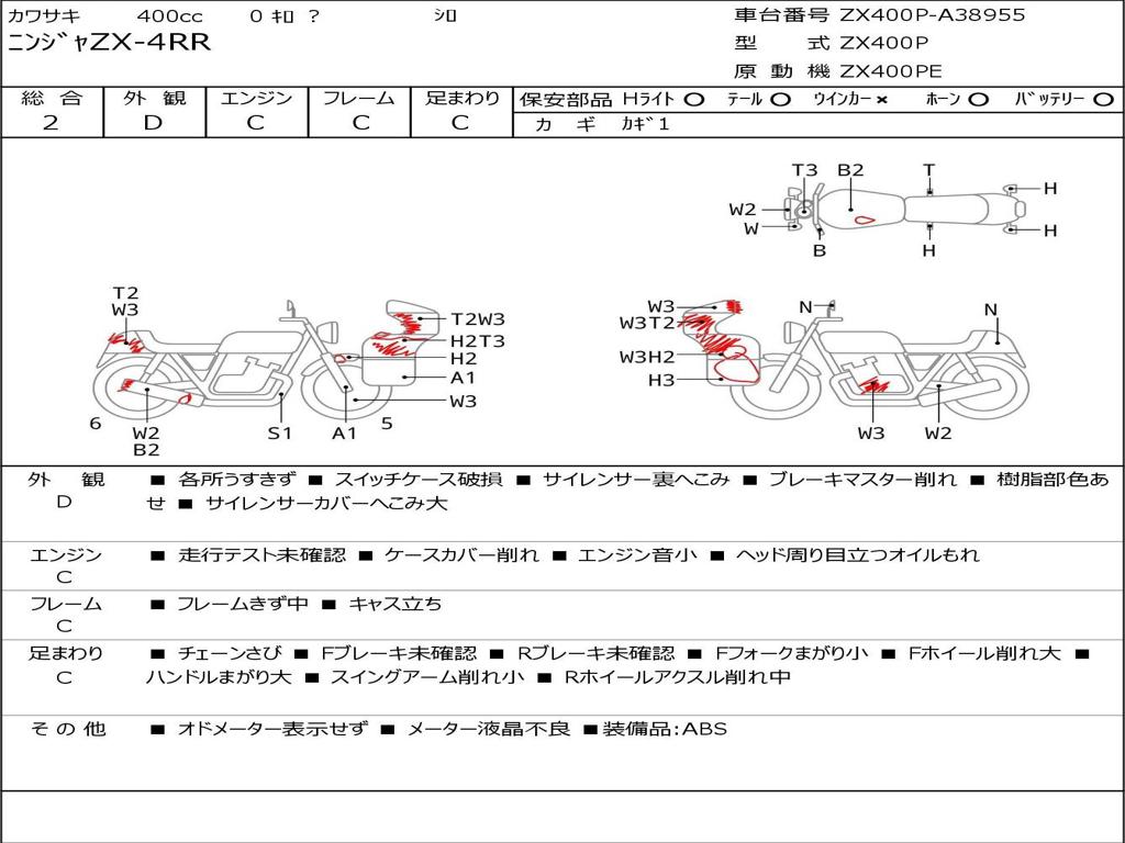 | Номер рамы / VIN | ZX400P-A38955 |