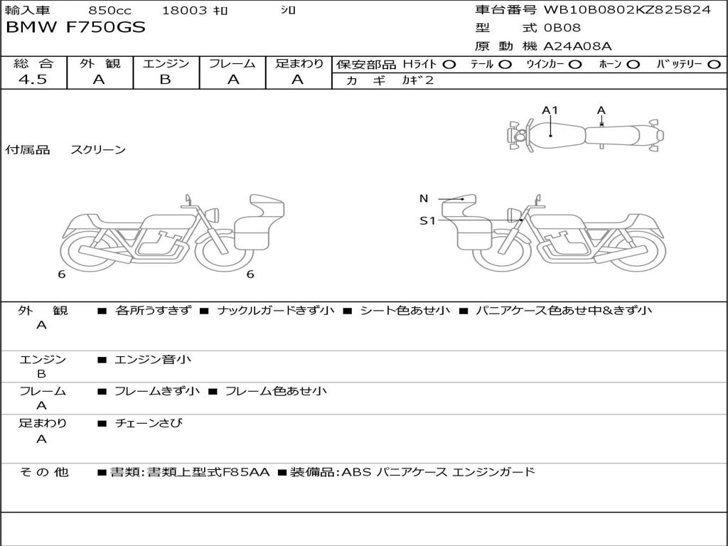 | Номер рамы / VIN | WB10B0802KZ825824 |