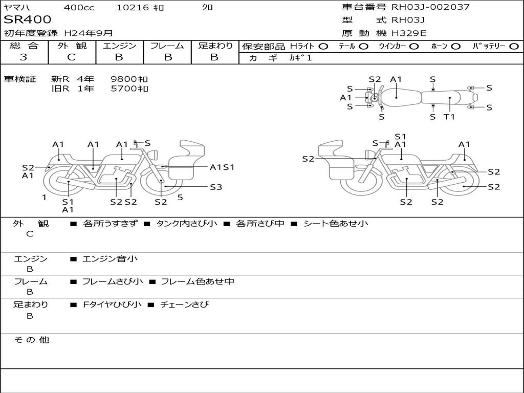 | Номер рамы / VIN | RH03J-002037 |