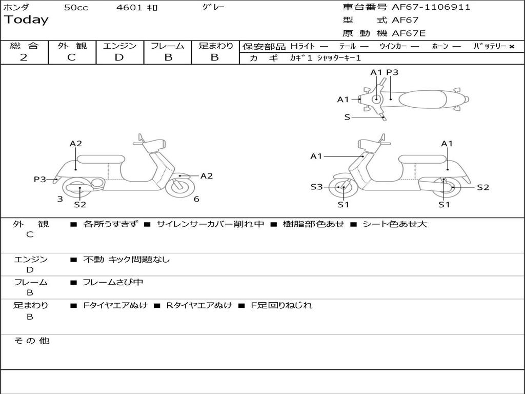 | Номер рамы / VIN | AF67-1106911 |