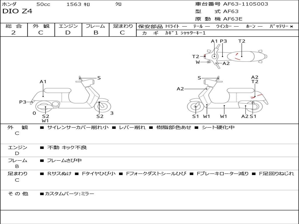 | Номер рамы / VIN | AF63-1105003 |