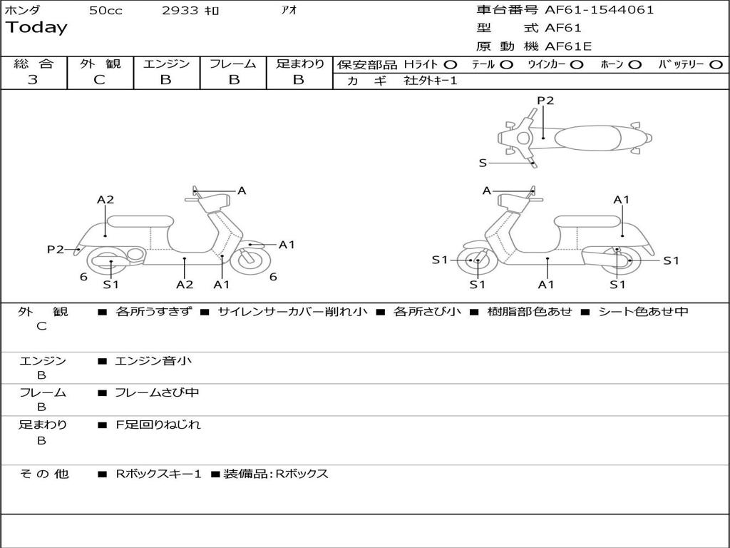 | Номер рамы / VIN | AF61-1544061 |