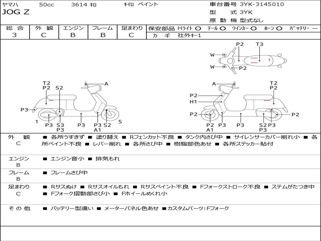 | Номер рамы / VIN | 3YK-3145010 |