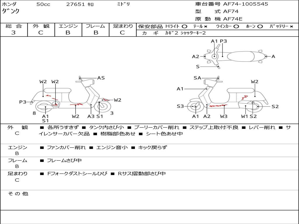 | Номер рамы / VIN | AF74-1005545 |