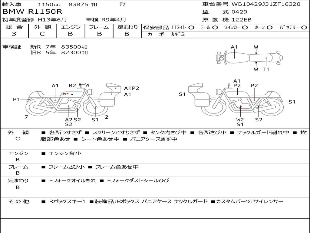 | Номер рамы / VIN | WB10429J31ZF16328 |