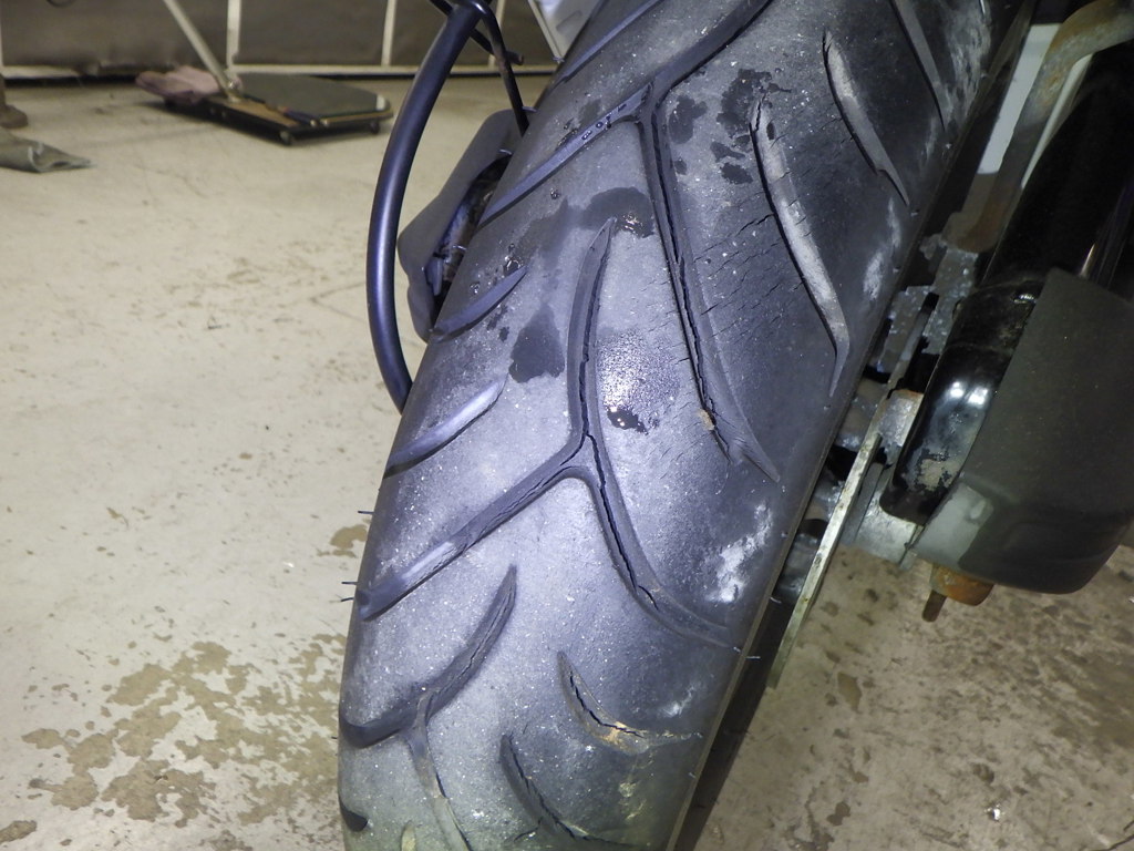 | шина | трещины, требует замены |