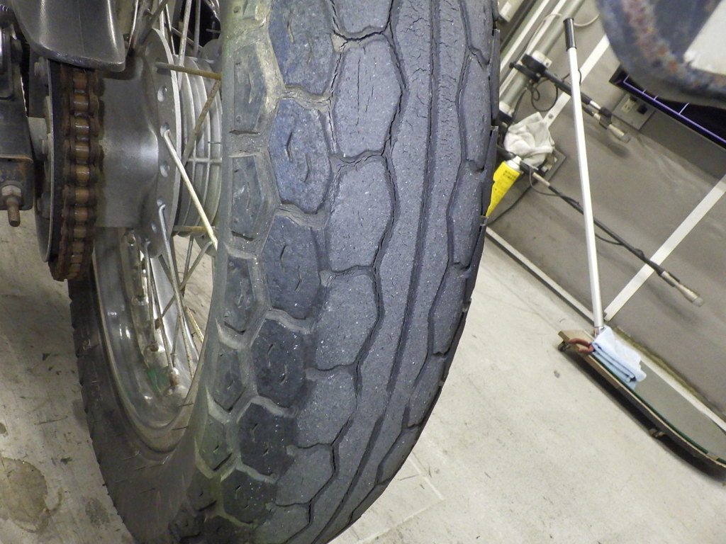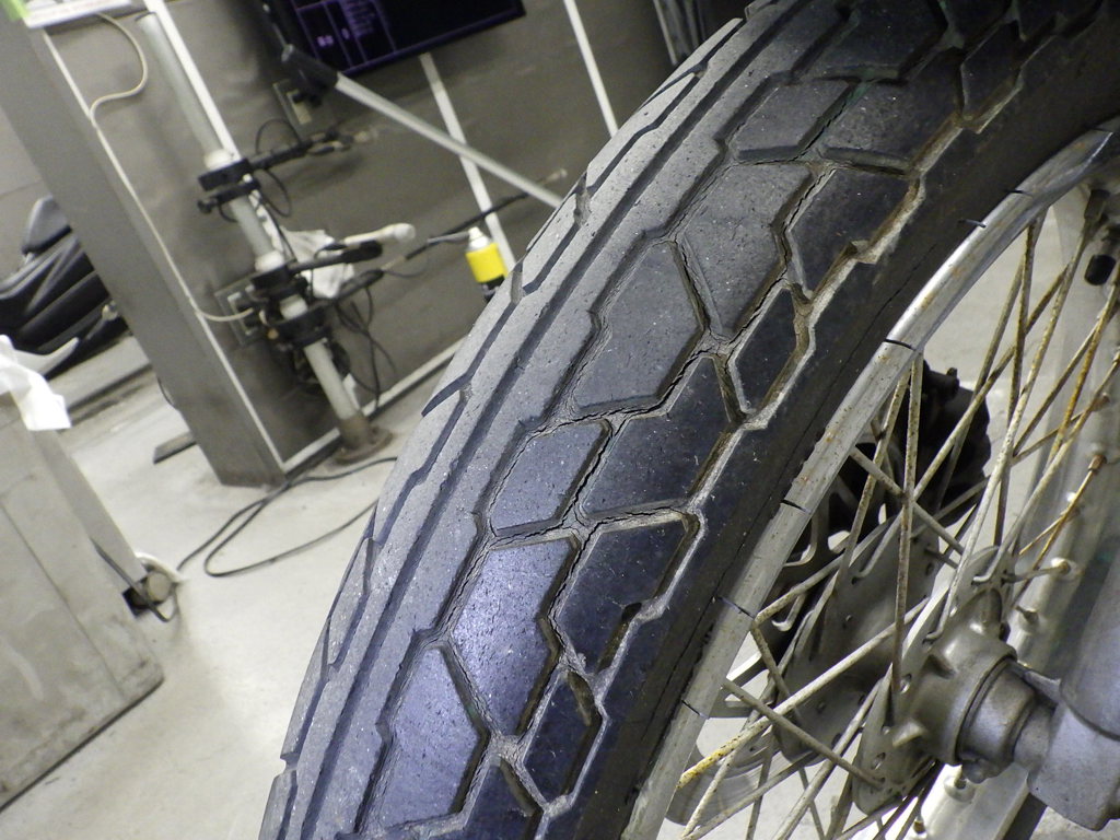 | шина | трещины, требует замены |