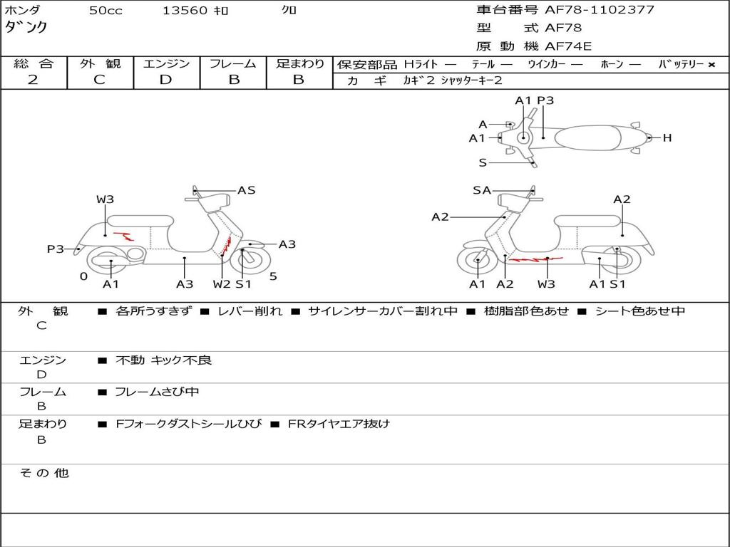 | Номер рамы / VIN | AF78-1102377 |