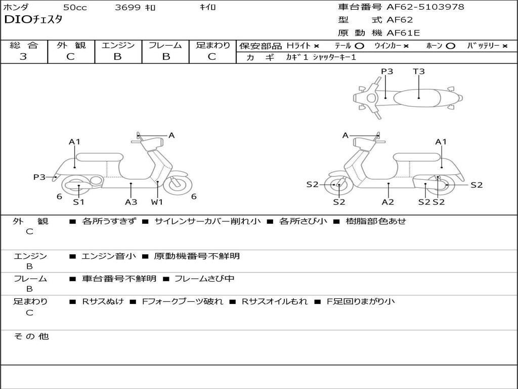| Номер рамы / VIN | AF62-5103978 |