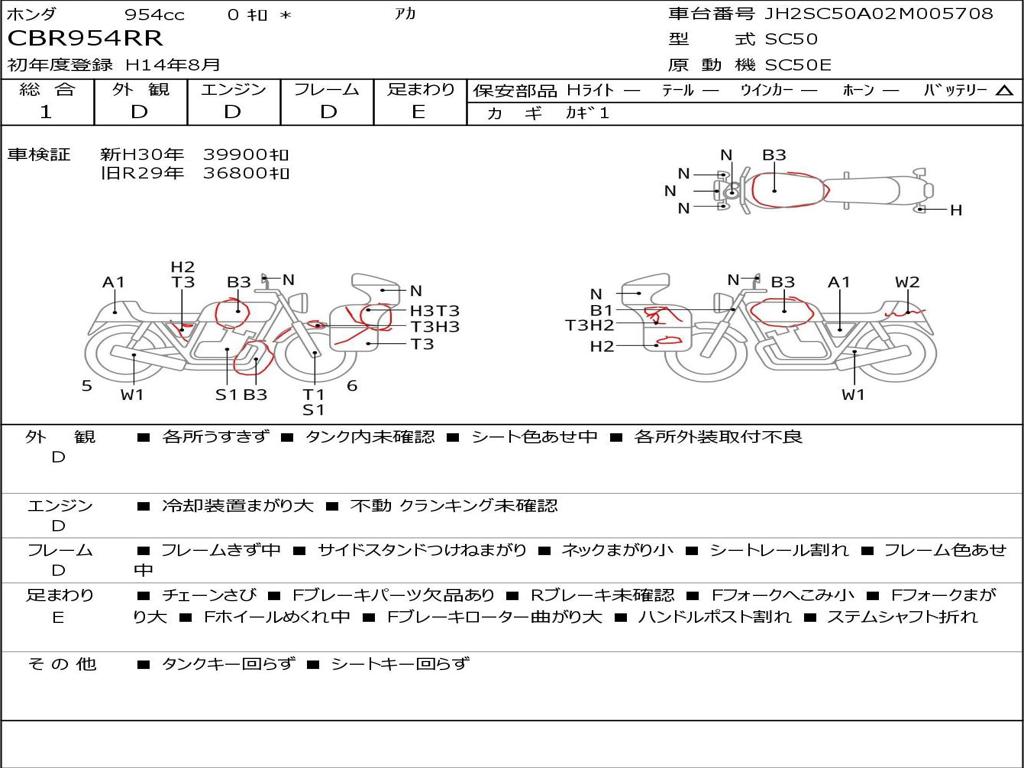| Номер рамы / VIN | JH2SC50A02M005708 |