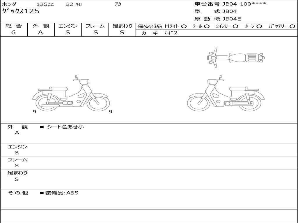 | Номер рамы / VIN | JB04-1006436 |
