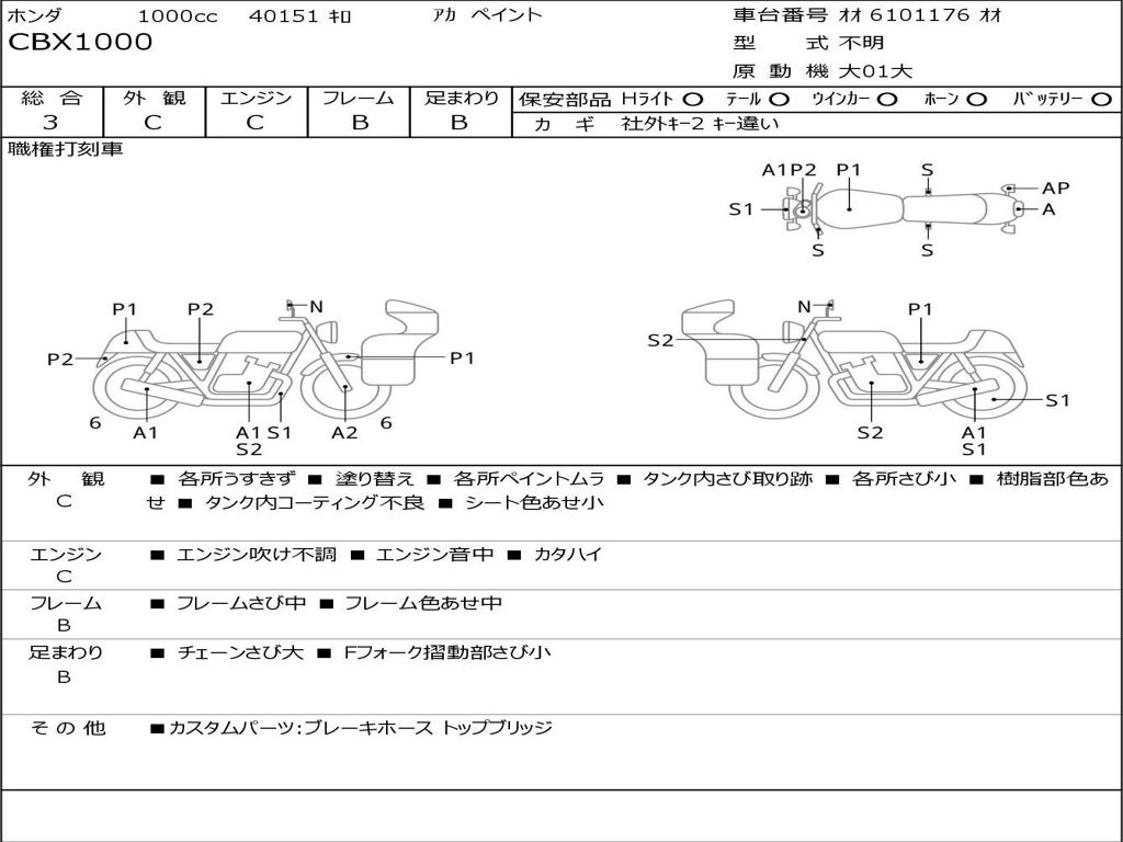 | Номер рамы / VIN | オオ 6101176 オオ |